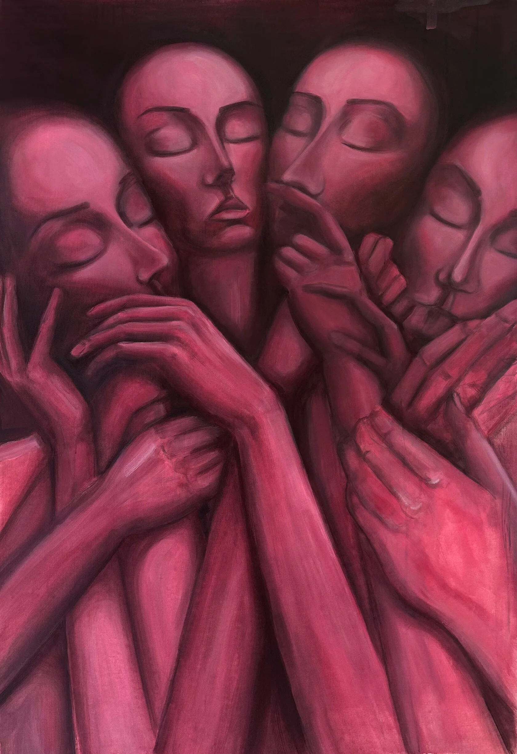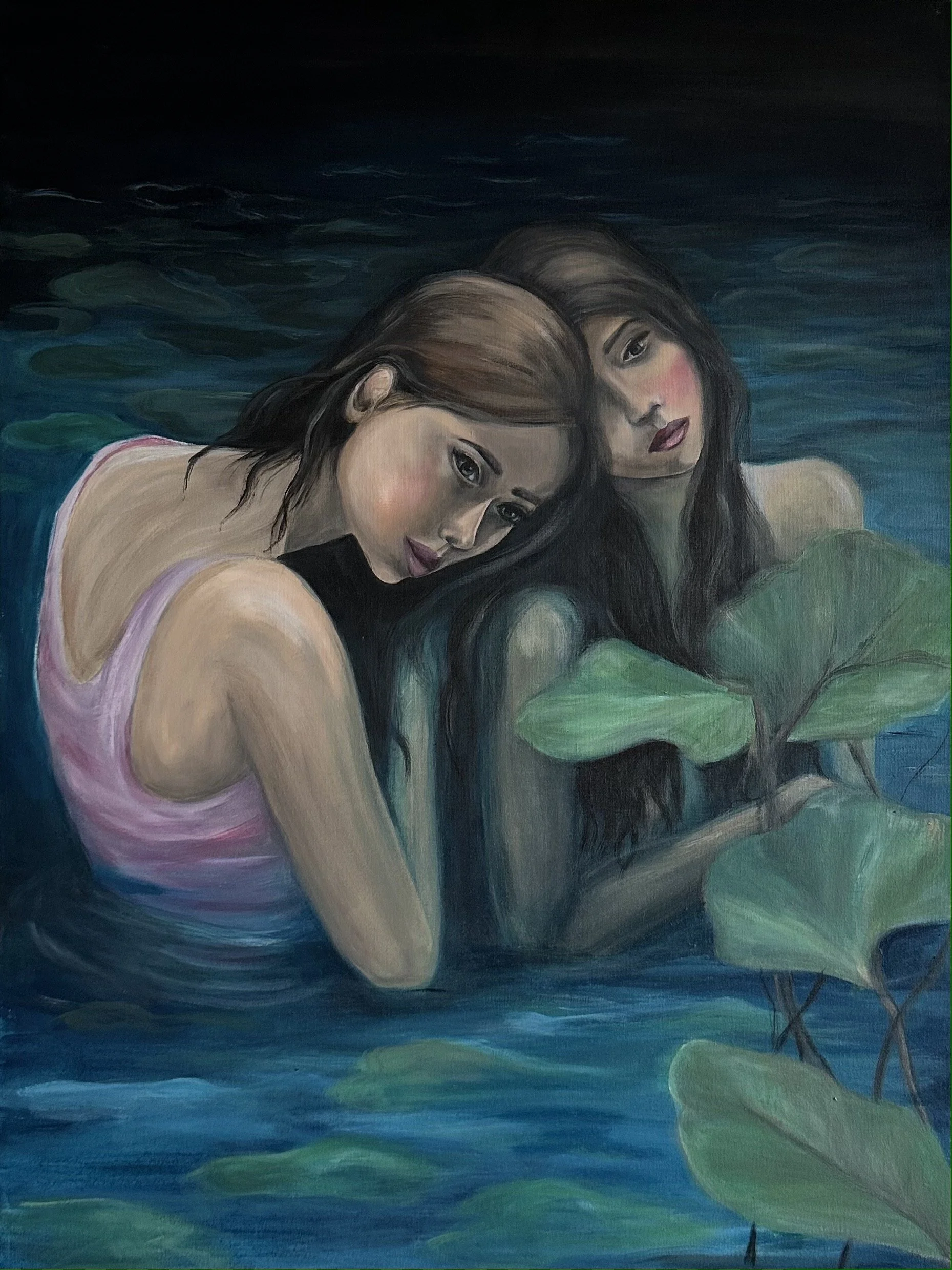 Recurring motifs, such as double figures, embody the internal dialogue between opposing aspects of the self, capturing the tension between acceptance and resistance, loneliness and connection. Through introspective imagery and emotional depth, Aleksandra’s art invites viewers to reflect on the complexities of the human experience and embark on their own journeys of renewal and harmony.