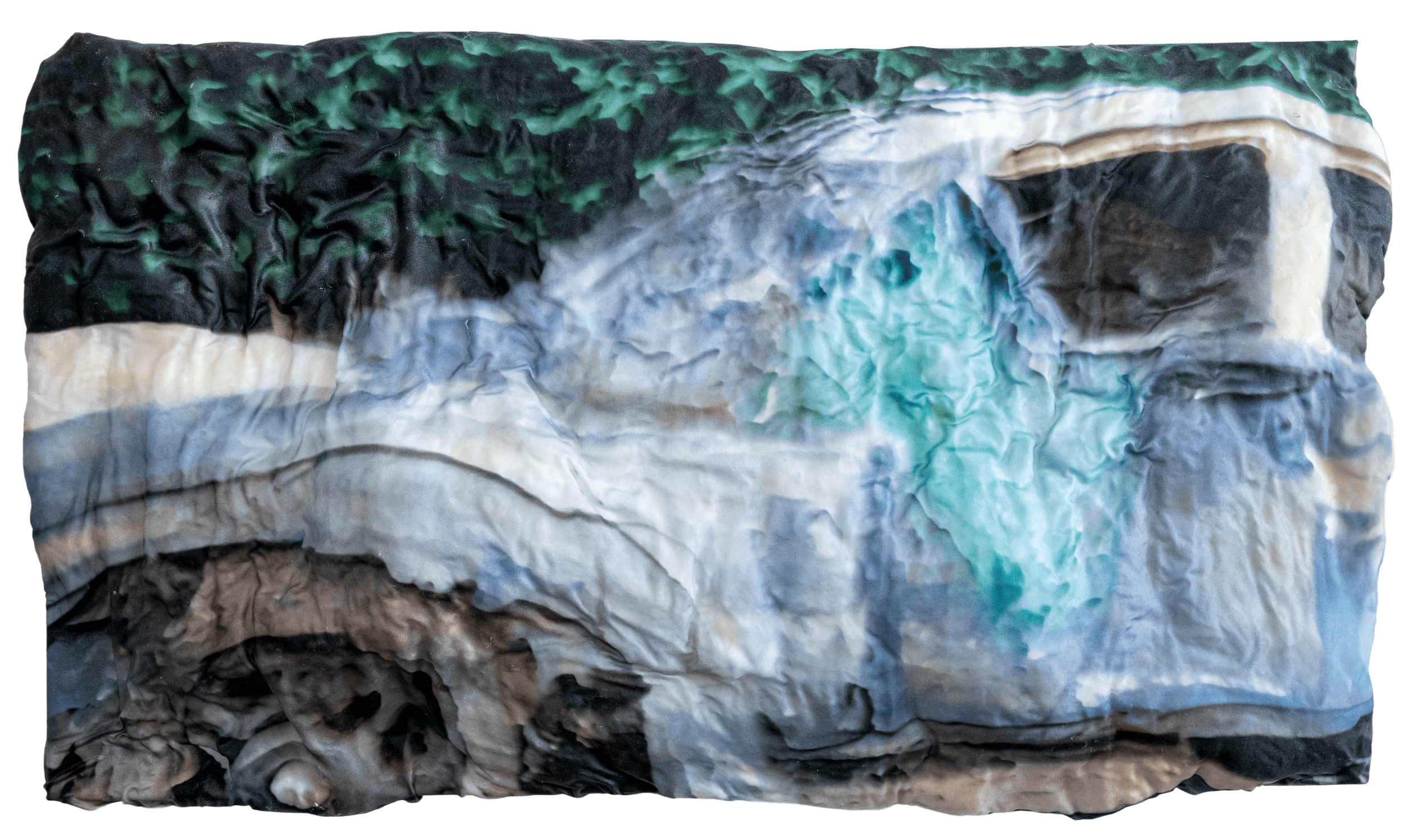 Recent projects involve printed fabric, fibrefill, and resin to create sculptural hybrid forms. Their blurred, distorted surfaces retain traces of multiple transformations. The resulting objects exist in a state of flux – part image, part artifact – never fixed, always in transition. They speak to a present defined by instability: layered, ambiguous, and perpetually shifting.