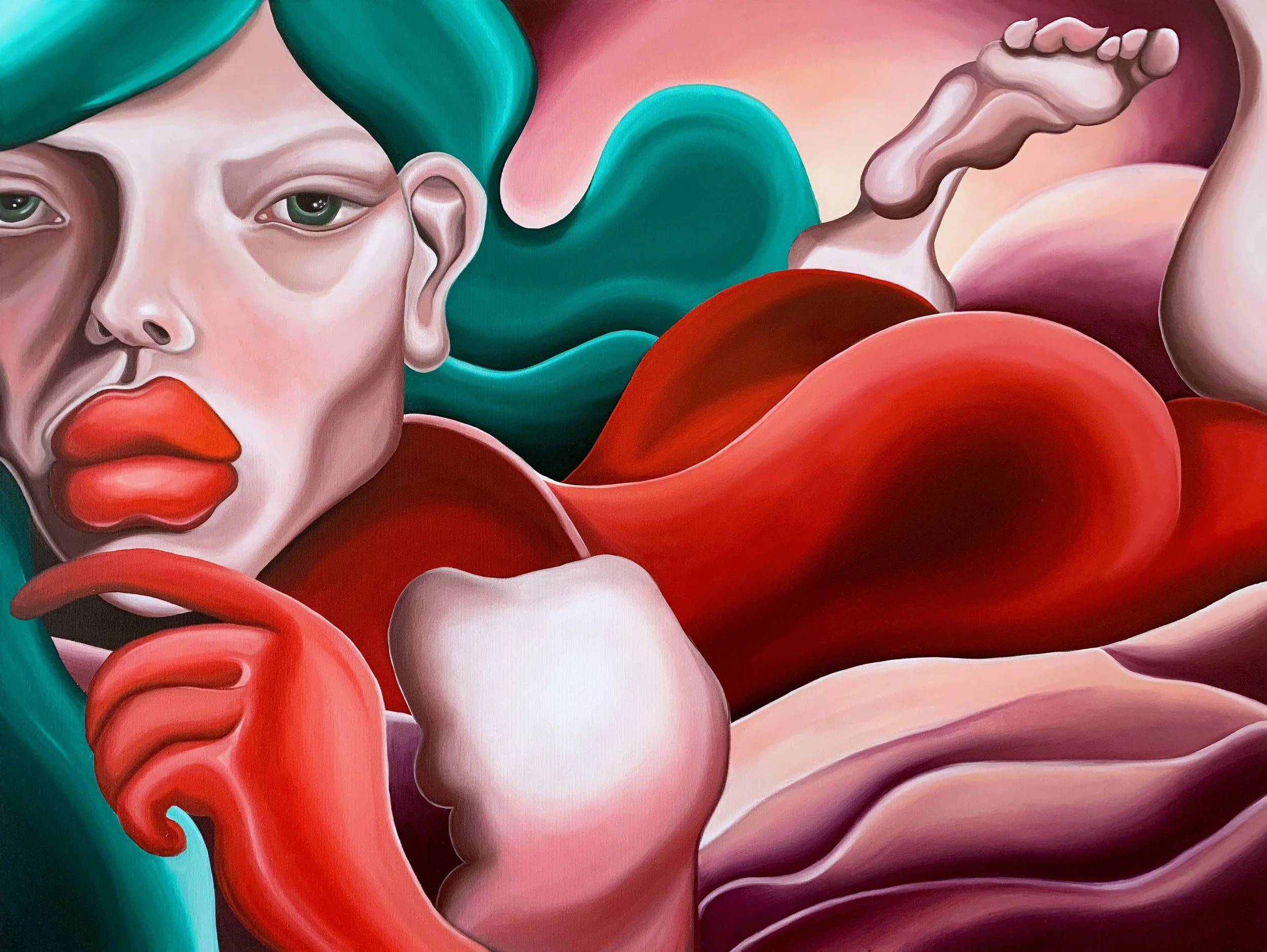 Davina Gescha's work navigates the space between the tangible and abstract, capturing emotions through bold faces, red lips, and the female form. Her art, rooted in her personal experiences, often reveals glimpses of herself within her subjects, as each piece carries a fragment of her own soul. For Gescha, the female body is not sexualized but a sanctuary—an authentic expression of strength and vulnerability.