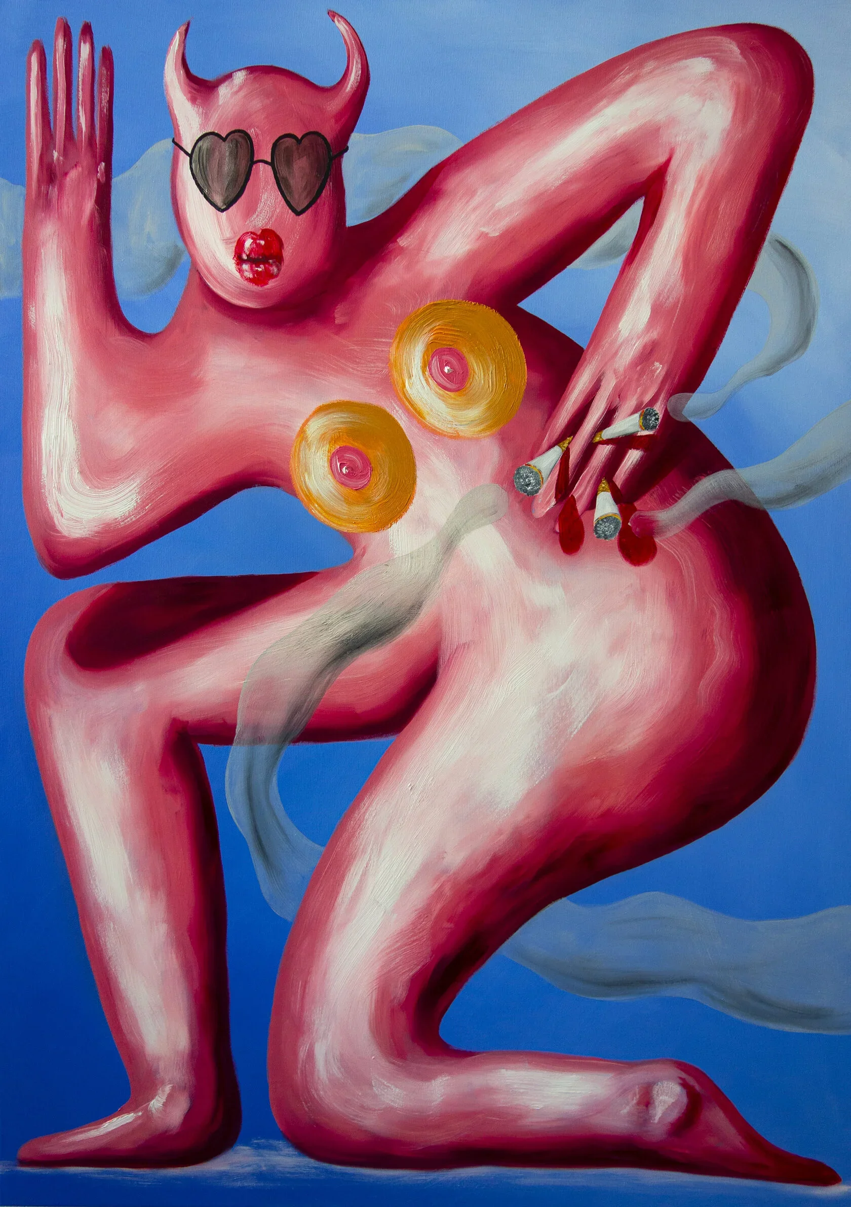 sexual symbol and aesthetic fantasy. By portraying one’s inner self with a style recognized by a strong expressiveness on the line, his faces, grimaces and characters, whether they are alone or in the middle of a crowd, are here to confront the viewer and to incite each of us to face our own individuality, to challenge and unveil the societal appearances. Who am I behind the mask? Who am I in the crowd? With this great theatre of the persona and its multiple identities, Hugo Baud explores the society and collective’s domination processes on one’s self, and how to detach oneself from this hold. His work has been exposed in various international context such as «The Urban Nation museum» in Berlin, Germany or «Guy Hepner» in New York, USA.